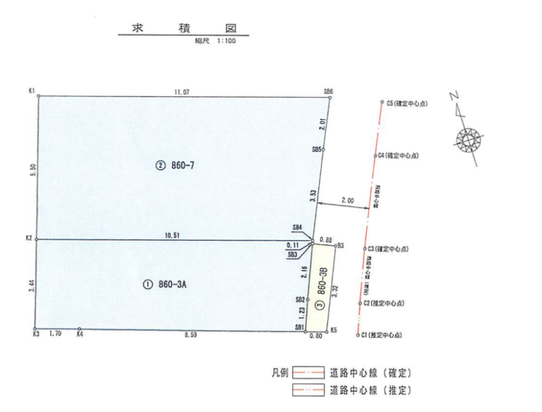 | 土地面積 | 111.7㎡ 狭あい道路拡幅整備事業申請中 セットバック後の面積は95.41㎡(28.86坪)になります。 |