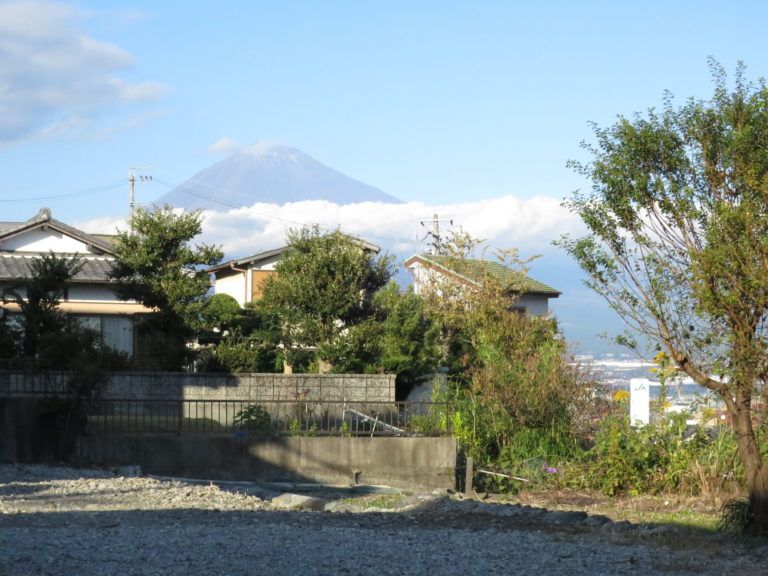 富士川右岸の河岸段丘崖、もしくは断層の上の土地で、富士山・富士川や、駿河湾を望むお宅を建てることができそうです。下段との高低差が約10.3mありますので、建てる場所によっては基礎グイを深く入れる必要があります。富士川駅まで270m、小学校まで550m、中学校まで900mと好立地です。約95坪ありますので、広々と住むことができます。